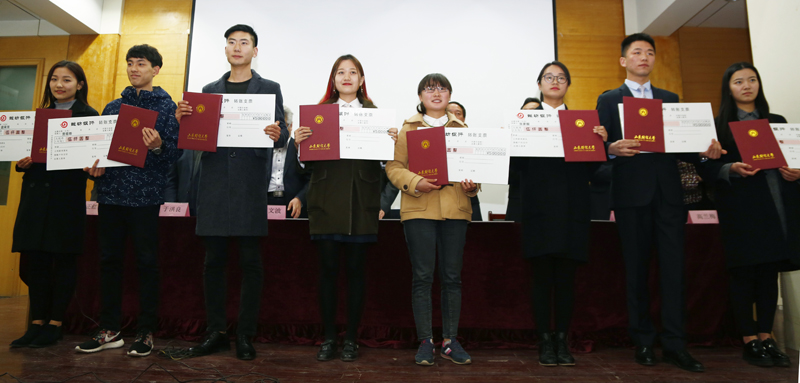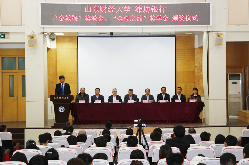 3月24下午,山东财经大学首届“潍坊银行金教鞭奖教金”“潍坊银行金鼎之约奖学金”颁奖仪式在燕山校区三号报告厅举行。校长卓志,副校长胡文波,潍坊银行股份有限公司党委书记、董事长郭虎英,行长助理王远军、文化金融事业部总经理高兰梅出席仪式。学校党委宣传部、学生工作处、潍坊银行相关负责人和艺术学院师生代表参加仪式。艺术学院5名优秀教师和20名优秀学生获得奖教金和奖学金。