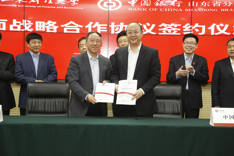 卓志和王锡峰分别代表山东财经大学和中国银行山东省分行签署了战略合作协议。