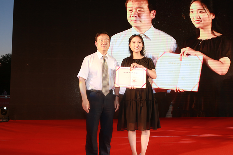 在感恩环节,以391分考入中央财经大学硕士研究生的王磊同学,当场将自己的国家奖学金证书赠与母亲,并深情地讲述了母亲无私哺育、默默支持自己的故事。母亲激动地说,“我没有文化,但是当妈妈的支持儿子是天经地义的,在学校老师的教育培养下,我的儿子能考上研究生,当妈的高兴啊”。母子俩的相拥而泣,让现场的许多观众眼眶含满泪光。鲍甜甜、宋佳怡、迟凌宇三位获奖者也在现场向多年来含辛茹苦的父亲,无私培养的恩师,陪伴互助的舍友表达了自己深深的感恩之情,将现场气氛不断掀起高潮。
