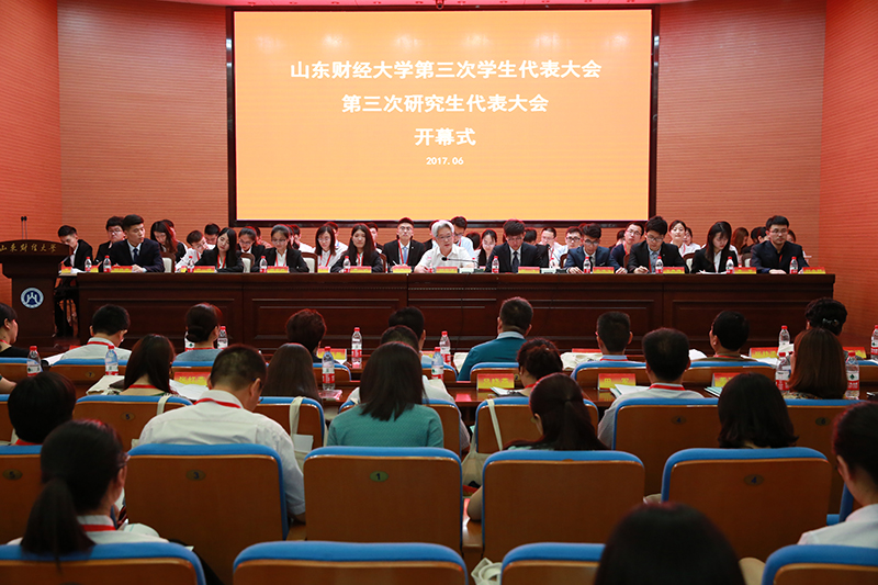 6月10日—11日,山东财经大学第三次学生代表大会、第三次研究生代表大会在燕山校区隆重举行。副校长胡文波,全国学联副主席、省学联主席、山东大学学生会主席刘飞出席开幕式并分别讲话和致辞。全校336名学代会代表、133名研代会代表参加大会。学校有关部门负责人、各学院党委副书记、团委书记等应邀出席开幕式。