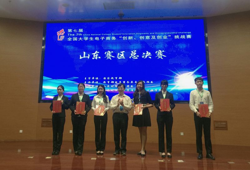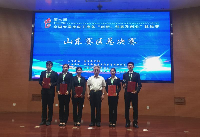 比赛分小组赛和终极对决两个阶段,参赛选手通过PPT陈述和回答评委提问的形式进行了激烈角逐,电子商务企业家和高校电子商务专家出任评委,对参赛团队进行了认真的评审。经过一整天激烈的角逐,山东师范大学“云海悦图”团队获山东赛区总决赛冠军,我校“Blue wings”、“小精灵战队”团队分获亚军、季军,特等奖、一等奖等奖项也分别决出。颁奖仪式上,李琪、胡文波、彭丽芳分别冠、亚、季军团队颁发了奖杯和证书。