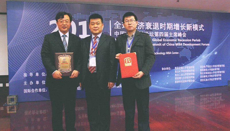 2012年11月24日至25日,由中国MBA发展论坛委员会、中国全球MBA发展论坛促进会、西安科技大学、西安MBA学会共同主办的主题为“全球经济衰退时期增长新模式”的中国MBA发展论坛第四届主席峰会在西安举行。我校MBA2008级学员、润华集团副总裁丁召华荣获“2012年中国MBA十大精英”荣誉称号,我校MBA2011级学员陈磊和魏崇红荣获“2012年中国MBA年度新秀”荣誉称号。我校MBA校友王文、丁召华、2011级学员陈磊出席本次会议。