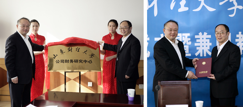 11月17日,山东财经大学公司财务研究中心成立暨兼职教授聘任仪式在燕山校区举行。校长刘兴云、副校长崔友平,首都经济贸易大学博士生导师汪平教授出席会议。学校科技处、人才工作办公室、会计学院、会计科学发展研究中心相关负责人和研究生参加了会议。刘兴云为汪平教授颁发了兼职教授聘任证书,并一道为研究中心揭牌。