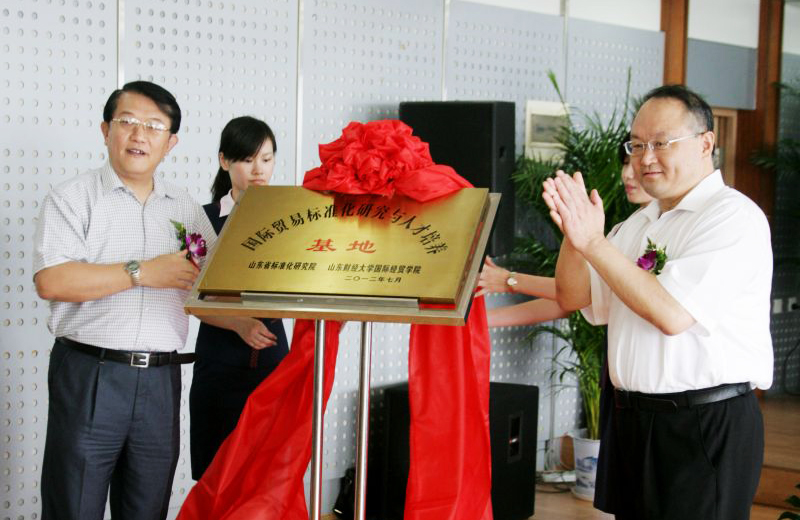 日前,国际经贸学院与山东省标准化研究院“国际贸易标准化研究与人才培养基地”揭牌暨战略合作协议签署仪式在济南举行。山东省质量技术监督局局长、党组书记丛大鸣、校长刘兴云为基地揭牌,山东省标准化研究院院长钱恒、国际经贸学院院长王培志出席仪式并致辞。
