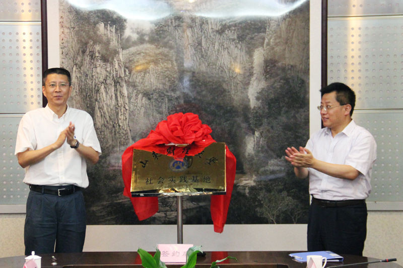 仪式上,管理科学与工程学院院长张新与王锋共同签署了产学研合作协议,崔友平与廉凯共同为山东财经大学社会实践基地揭牌。