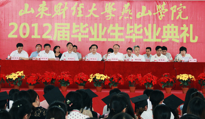 6月27日上午,山东财经大学燕山学院2012届毕业生毕业典礼在明水校区体育馆隆重举行。校党委书记郝书辰,校长、燕山学院院长刘兴云,校党委副书记、纪委书记牟思伦,副校长胡文波出席典礼,党办、校办负责人和燕山学院全体毕业生参加典礼。燕山学院党总支书记、副院长陈常森主持典礼。