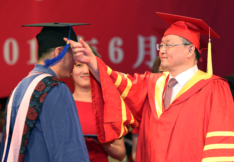 刘兴云与毕业研究生逐一握手表示祝贺,为他们拨流苏,颁发学位证书,并合影留念。随后,导师代表为本科毕业生逐一颁发学位证书。仪式持续两个多小时,导师们不辞辛劳、一丝不苟的精神深深感染了每一位毕业生,成为他们在大学校园里收获的最后一份值得终生珍藏的回忆。