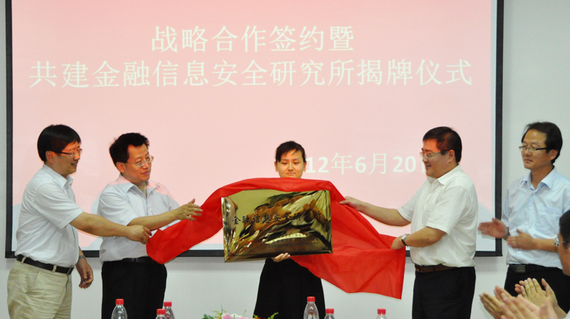 6月20日,我校山东省金融信息工程技术研究中心和山东中孚信息产业股份有限公司战略合作签约暨共建金融信息安全研究所揭牌仪式在舜耕校区举行。副校长崔友平,济南市发展与改革委员会副主任张军,济南市科技局总工程师贾文涛,山东中孚信息产业有限公司董事长魏东晓共同为金融信息安全研究所揭牌。计算机科学与技术学院执行院长兼山东省金融信息工程技术研究中心主任徐如志和魏东晓代表双方在战略合作协议上签字。山东省地税局、山东省农信社和山东省城市商业银行合作联盟等单位的IT部门领导共同出席本次签约及揭牌仪式。揭牌及签约仪式由科技处处长刘瑞波主持,山东中孚公司副董事长李胜向参会人员介绍了双方建立战略合作关系共建金融信息安全研究所的背景和发展规划。