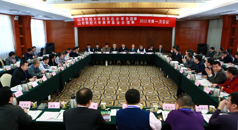 1月17日,山东财经大学校友总会常务理事暨教育基金会理事2015年第一次会议在舜耕校区举行。学校党委书记书记刘兴云、校长卓志、副校长胡文波、校友总会常务理事、教育基金会理事60余人及校长办公室、教务处、学生处、就业指导处、团委、校报等职能部门负责人出席会议。会议由胡文波主持。