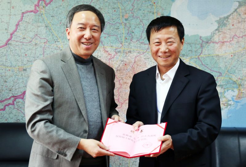 卓志代表学校为白彬和方杰颁发了山东财经大学保险硕士研究生合作导师聘书。