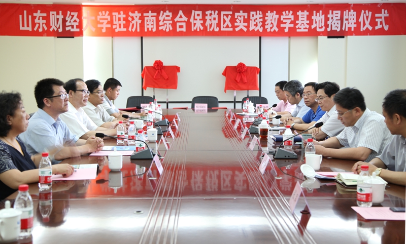 仪式上,吴彬代表学校向济南综合保税区给予的大力支持致谢,表示对保税区的建设发展成就感到鼓舞。他介绍了学校合并组建以来的总体发展情况,要求两个学院充分发挥好各自的人才和专业优势,以共建实践教学基地为契机,密切理论研究、课堂教学与实际工作的联系,不断提高人才培养质量,推动产学研更好结合。张端武副主任代表济南高新区对我校师生的到来表示热烈欢迎,并对此次合作作了高度评价。他说,山东财经大学是我省著名高校,与济南综合保税区共建实践教学基地,有利于应用型人才的培养,也有利于保税区的发展,济南综合保税区热诚欢迎山财大学生前来实习、创业,并提供一切便利条件。