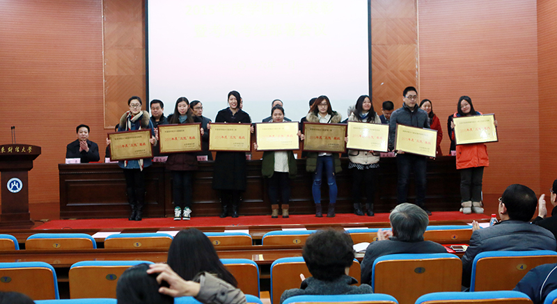 会上,学工部部长王剑宣读了学校《关于表彰校长奖学金获奖学生的决定》、《关于表彰2014—2015学年“三优”班级、先进班集体、优秀学生、优秀学生干部的决定》、《关于表彰第四届“长城学生工作奖”的表彰决定》;校团委书记刘奇耀宣读了《关于表彰2015年山东财经大学社会实践“三千计划”先进集体和先进个人的决定》、《关于奖励2015年山东财经大学学生实践和创新成果的决定》,并进行了颁奖仪式。2015年度校长奖学金代表李一诺同学、第四届长城学生工作奖获奖代表管理科学与工程学院周广春老师、2015年社会实践“三千计划”优秀指导教师标兵代表李启航老师分别作了发言。教务处副处长李延勇就加强本科生考风考纪工作进行了部署,研究生院副院长崔霞就加强研究生考风考纪工作进行了部署。