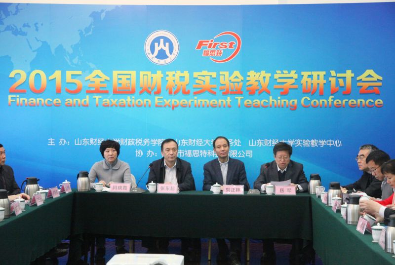 11月21日,由山东财经大学财政税务学院、教务处、经济实验教学中心共同主办,广州福思特科技有限公司协办的2015全国财税实验教学研讨会在我校召开。来自武汉大学、南开大学、山东大学、中央财经大学、西南财经大学、东北财经大学、江西财经大学、天津财经大学、重庆工商大学、安徽财经大学、安徽大学、广东财经大学、新疆财经大学、广西财经学院、贵州财经大学、河南财经政法大学、湖北经济学院、吉林财经大学、南京审计学院、青岛大学、山西财经大学、首都经贸大学、云南财经大学、山东科技大学、闽江学院等26家国内知名高校的财政学和税收学教学单位与会计之友杂志社、济南税务学会2家研究机构的代表共55位专家出席了会议,学校党委副书记张东超、教务处处长刘正林出席会议开幕式并分别致辞;研讨会发言阶段由财政税务学院院长岳军主持,实验室参观阶段由经济实验教学中心主任丛建阁主持。全部代表参观了我校财税综合实验室。