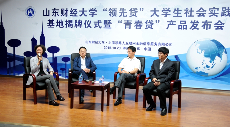 10月23日,山东财经大学“领先贷”大学生社会实践基地揭牌仪式暨“青春贷”产品发布会、上海校友会返校活动在大学生创业园隆重举行。副校长胡文波、上海领路人互联网金融信息服务有限公司创始人兼董事长朱上民、联合创始人兼CEO 陈济、首席市场总监卞贞兵、首席风险官吴晨彤、首席公关总监章佳錡、董事长助理陈彦磊、领路人照明副总经理许志平、上海校友会副会长黄晶、周贵银以及校友工作办公室、学生工作处、就业处、团委、工商管理学院、国际贸易学院、管理科学与工程学院、计算机科学与技术学院等负责人及100余名学生代表出席了活动。活动由校友工作办公室主任耿金波主持。