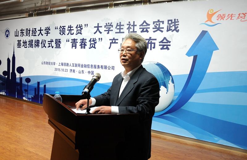 胡文波在讲话中感谢领路人集团对学校发展的支持,感谢领先贷为学校设立社会实践基地。他指出,社会实践基地的建立,架起了学校与企业、学生与社会联系的桥梁与纽带,为山东财大学生通过社会实践活动开阔眼界、锻炼成才提供了支撑,为企业创新研发新产品、解决人才紧缺开辟了新的渠道,对校企双方优势互补,促进校企合作发展有着深远的意义。专门为大学生研发的“领先贷”新产品,符合国家新形势下培养优质人才需求,让学生在成长过程中多了一个辅助平台。希望在校学生要充分利用好这个平台,在成长成才的道路上走得更快一些。