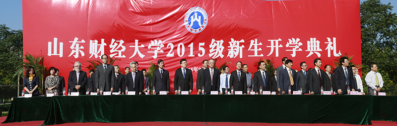 9月12日上午,山东财经大学2015级新生开学典礼在圣井校区和明水校区隆重举行,来自全国各地的7300多名本科生参加开学典礼。学校领导刘兴云、卓志、张东超、聂培尧、綦好东、胡文波、李明勇、吴彬、杨天梅出席典礼。各学院和部分职能部门负责人参加典礼。开学典礼由党委书记刘兴云主持。