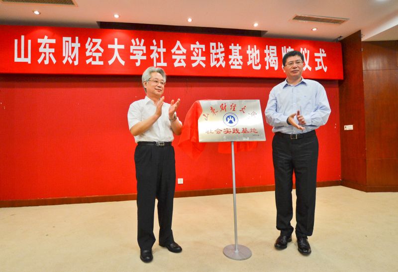 7月2日,山东财经大学社会实践基地暨外语教学实践基地揭牌仪式在诸城市举行。副校长胡文波、外国语学院院长李毅、党委书记王有志、校团委书记刘奇耀和诸城市市长李峰、副市长许传平以及部分企业界代表出席了揭牌仪式。许传平代表诸城市政府与李毅签署了社会实践基地协议,胡文波和李峰共同为社会实践基地揭牌。