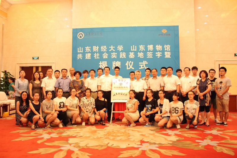 7月11日,山东财经大学社会实践基地暨艺术学院教学实践基地揭牌仪式在山东博物馆举行。副校长胡文波、艺术学院院长范正红、艺术学院党委书记杨春丽、校团委书记刘奇耀和山东博物馆馆长郭思克、党委书记王斌,副馆长王之厚、卢朝辉出席仪式。杨春丽和郭思克签署了双方共建协议,胡文波和郭思克共同为社会实践基地揭牌。