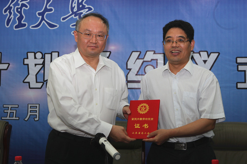 党委书记刘兴云为刘培德教授颁发了“山东省富民兴鲁劳动奖章”。校长卓志与教师代表刘培德签署了学校首批人才支持计划协议。