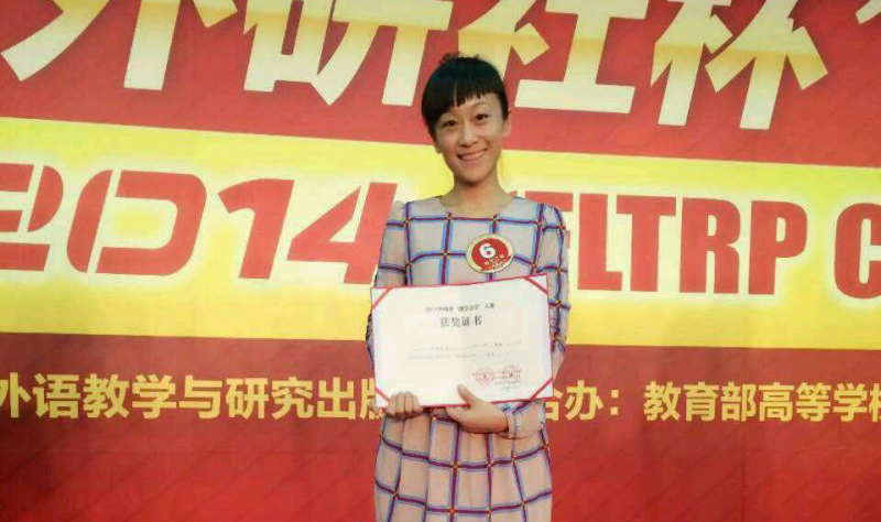 12月11日,在北京举行的2014外研社“教学之星”大赛全国总决赛中,我校公共外语教学部教师曹颖凭借扎实的语言功底、鲜明的教学主题、精心的课堂设计和严谨的教学态度,与其他17位全国初赛特等奖获得者展开激烈角逐,最终脱颖而出,荣获2014外研社“教学之星”大赛全国总决赛亚军。教育部高教司副司长刘贵芹、全国大学外语教学研究会会长杨治中、北京外国语大学校长彭龙出席颁奖仪式。