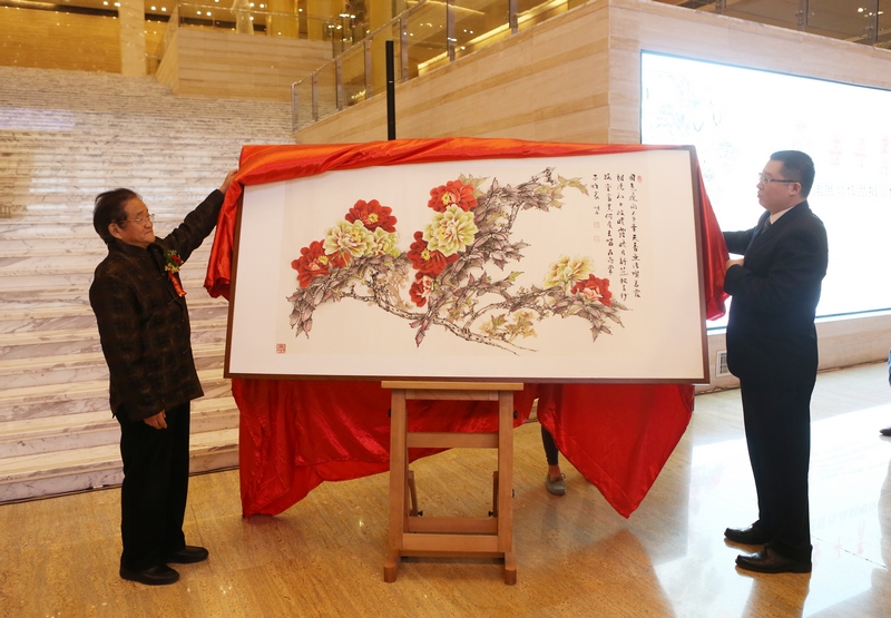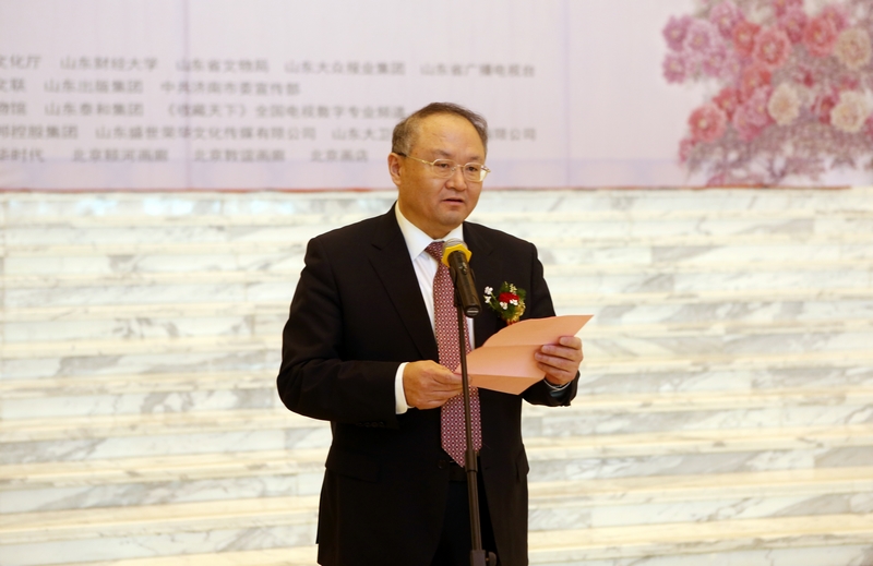 学校党委书记、校长刘兴云出席开幕式并代表主办方致辞。原国务院参事、全国政协常委、中华海峡两岸艺术家协会主席任玉岭,意大利文化中心主席、国际著名策展人温亲佐.桑弗,全国政协委员、香港美术收藏家联合会主席、著名画家吴欢先后致辞。曹明冉在展出现场将一幅名为《富贵祯祥》的力作捐献给山东省博物馆。