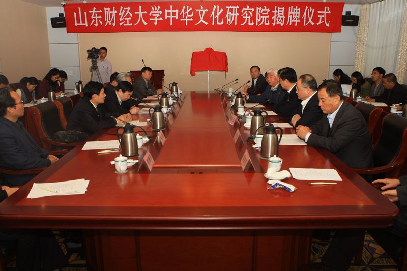10月30日,山东财经大学中华文化研究院揭牌仪式在石岛山庄举行。山东省政协副主席许立全、山东省政协原副主席李殿魁出席仪式并发表讲话。山东省中华文化促进会副主席赵华民、中国孔子文化基金会副理事长武卫华、山东省政协文史委原副主任郝铁柱、山东省中华文化促进会副秘书长马以林、山东大学儒学高等研究院副院长杜泽逊、山东师范大学齐鲁文化研究院博士彭跃光,学校党委书记、校长刘兴云,党委副书记张东超,副校长胡文波出席仪式。山东财经大学中华文化研究院负责人及部分研究员,学校相关学院、职能部门负责人,新闻媒体的记者参加了仪式。仪式由党委副书记张东超主持。