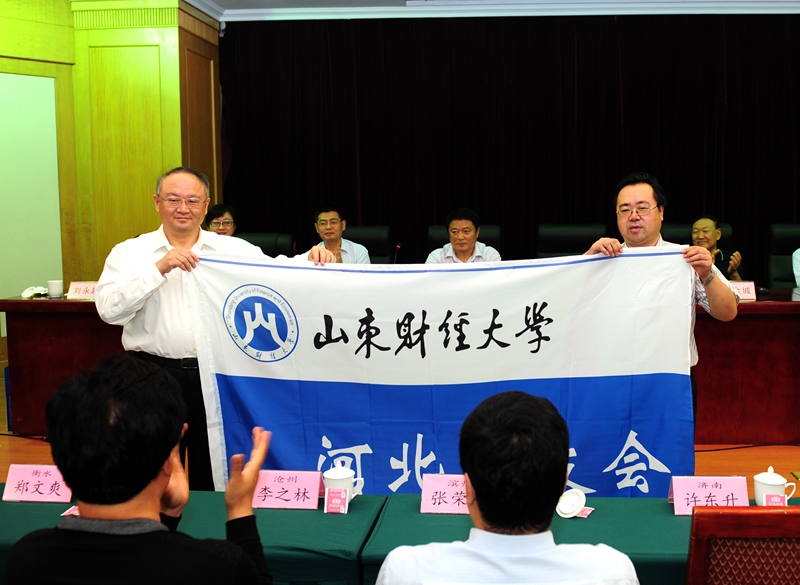 9月20日,山东财经大学河北校友会成立大会在石家庄市举行,来自河北省内各地的140余名校友代表参加了会议。学校党委书记、校长、校友总会会长刘兴云及党委办公室、校友工作办公室负责人到会祝贺,河北省财政厅原副厅长、河北省政协提案委员会副主任陈金城,石家庄经济学院党委书记郝东恒,河北师范大学汇华学院院长李占涛应邀出席。滨州校友会副会长兼秘书长张荣堂、北京校友会筹备组负责人余仁山、天津校友会筹备组成员马宏宇、潍坊校友会筹筹备组成员时永奎等也专程到会祝贺。民建河北省委,河北师范大学,河北省商业会计学会,河北省注册会计师协会,上海、贵州、四川、湖南、甘肃、深圳、青岛、东营、广西、滨州、聊城、淄博校友会及北京、天津、内蒙古、云南、济南、潍坊、德州、枣庄、泰安、日照校友会备组纷纷发来贺电、贺信。刘兴云发表讲话并为河北校友会授旗。
