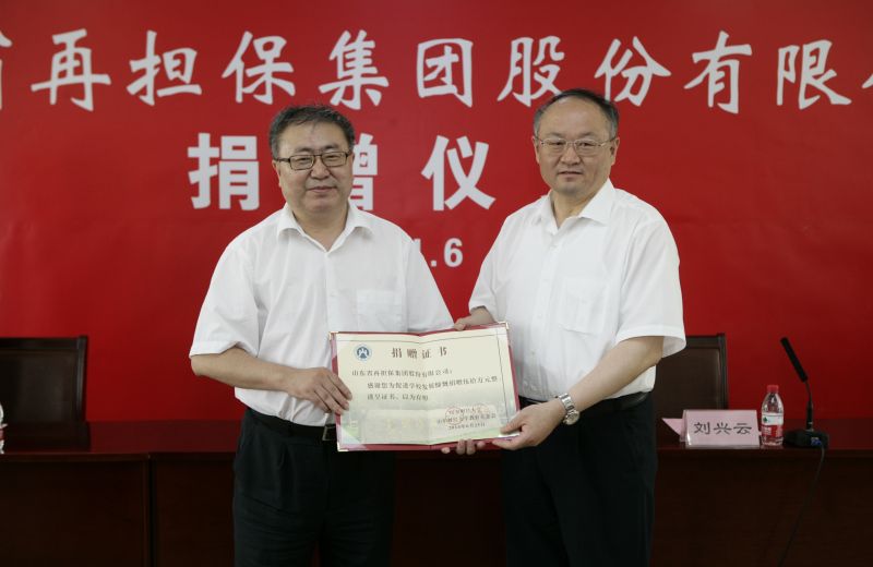 刘兴云向再担保集团捐资助学表示衷心感谢。他介绍了山东财经大学近几年的发展情况,并表示再担保集团在事业取得成就、为社会创造财富的同时,还始终秉承乐于奉献的企业精神,不遗余力地为推动社会公益事业和教育事业发展做贡献。此次捐款资助我校不仅体现了再担保集团关心教育、重视人才的远见卓识,更体现了对山东财经大学事业发展的鼎力支持。再担保集团的捐助,必将激励广大学生刻苦攻读,奋发成才,将来更好地报效祖国。他指出,山东财经大学与再担保集团一直保持密切的联系,希望双方以本次捐资助学活动为契机,积极搭建校企合作新平台,依托各自资源优势,大力开展深层次合作,推动实现互利共赢、共同发展。