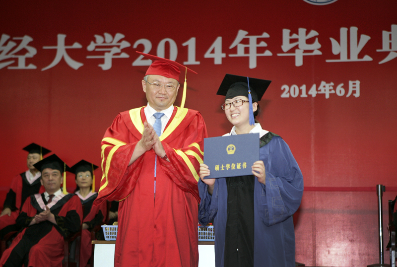 研究生部主任韩作生宣读2014届硕士研究生毕业资格及学位授予情况审查报告;教务处处长刘正林宣读2014届普通本专科学生毕业资格及学位授予情况审查报告;就业指导处处长苏洪志宣读表彰2014届优秀毕业生的决定。在欢快的乐曲声中,学生代表上台领取了毕业证书及优秀毕业生荣誉证书。