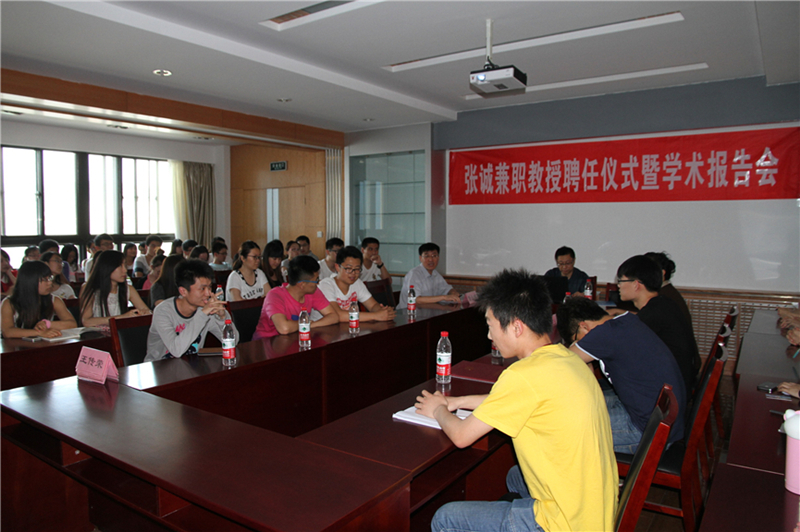 聘任仪式后,张诚作了题为《银行业务与从业人员素养》的学术报告会。报告介绍了银行业务体系和架构,以及存在风险。并且从就业的实际角度向学生们描述了作为银行从业人员需要具备什么样的条件和能力,以及实际工作中会遇到的各种情况和问题。张诚用自己丰富的实践经验和理论知识为在场学生作了一场形式生动,内容丰富、实用、信息量大的学术报告,向学生们阐释了做人做事的道理。学生们对报告反响十分热烈,讲座中及结束后,积极与主讲人进行互动交流。