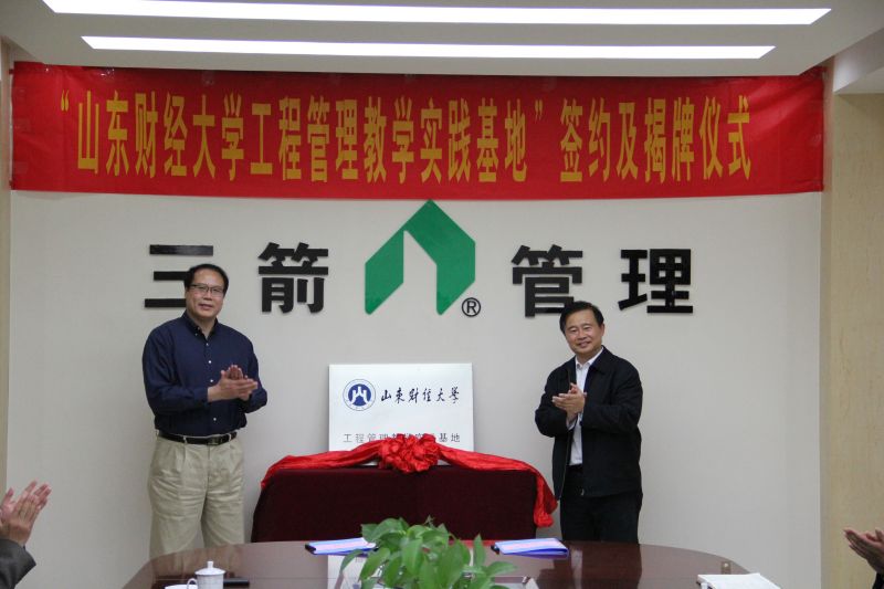 张镇、吴彬先后致辞,介绍了双方单位情况,回顾了双方的合作历史,对今后的合作进行了展望。吴彬副校长与张镇董事长共同为“山东财经大学工程管理教学实践基地”揭牌。管理科学与工程学院院长张新对今年双方以工程管理和项目管理专业为依托的“产学研”合作内容和方式进行了说明,并与三箭管理公司董事长赵庆民共同签属了合作协议。