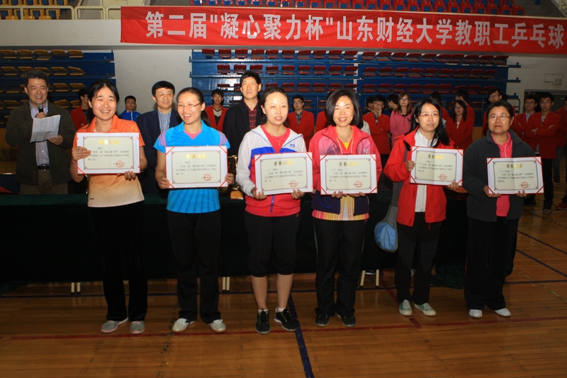图书馆高辉勇夺女子单打冠军、体育学院曹杰获得亚军、体育学院曲红军获得季军,文学与新闻传播学院张洋、金融学院唐磊、机关二队张艳霞、工商管理学院周霓、法学院王维芳分获女子单打四至八名。