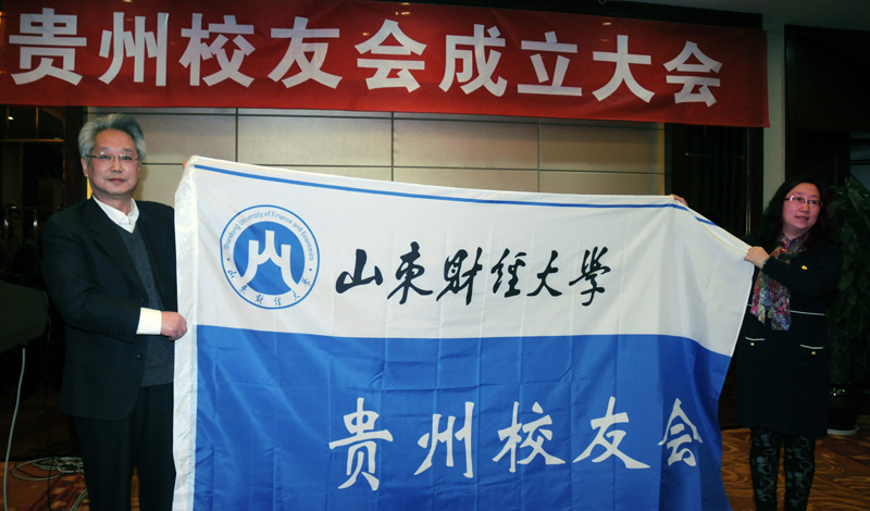 1月11日,山东财经大学贵州校友会成立大会在贵阳市隆重召开,来自贵州省各地的100余名校友代表参加成立大会。副校长、校友总会副会长胡文波到会发表讲话并为贵州校友会授会旗。校友办公室主任、校友总会秘书长耿金波代表校友总会宣布贵州校友会第一届理事会领导机构。