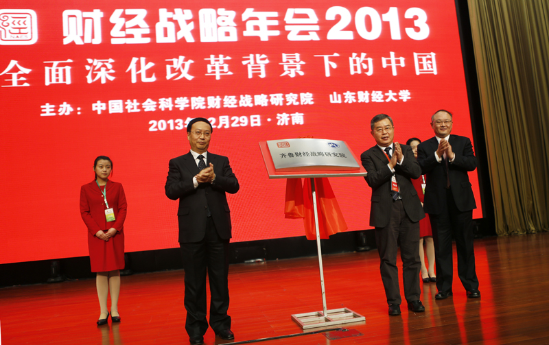 12月29日,齐鲁财经战略研究院揭牌仪式在济南举行。中国社会科学院党组成员、副院长李扬,中国社会科学院财经战略研究院院长高培勇,山东财经大学党委书记、校长刘兴云为齐鲁财经战略研究院揭牌。
