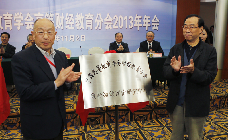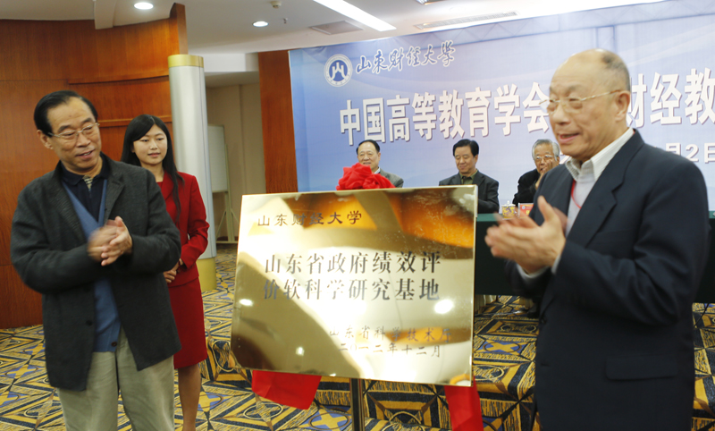 开幕式上,刘仲藜和黄可华共同为挂靠我校的“中国高等教育学会高等财经教育分会政府绩效研究中心”、“山东省政府绩效评价软科学研究基地”揭牌。