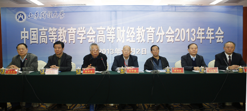 11月2日,由我校承办的中国高等教育学会高等财经教育分会年会在舜耕校区召开。原财政部部长刘仲藜,山东省政府原副省长、原省人大副主任黄可华,高等财经教育分会理事长张玉泰,山东省教育厅副厅长郭建磊,山东省财政厅副厅长庞敦之,山东省软科学办公室主任王建国和来自中央财经大学、西南财经大学、中南财经政法大学、东北财经大学等40余所高校的领导、专家学者以及经济科学出版社的110余名代表出席了开幕式。我校党政领导刘兴云、牟思伦、张东超、聂培尧、綦好东、胡文波、李明勇、吴彬、王雷亭以及老领导吴世杰、张建玲、部分二级学院院长参加会议。开幕式由分会常务副理事长李玉书主持。