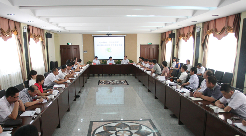 9月3日上午,东方学院召开新学期中层管理干部会议。副校长綦好东,山东黄金集团总经理助理、总审计师兼东方学院董事长孙秀恩,东方学院领导班子成员及各部门、单位中层干部和助理参加会议。会议由东方学院常务副院长、分党委副书记高立明主持。