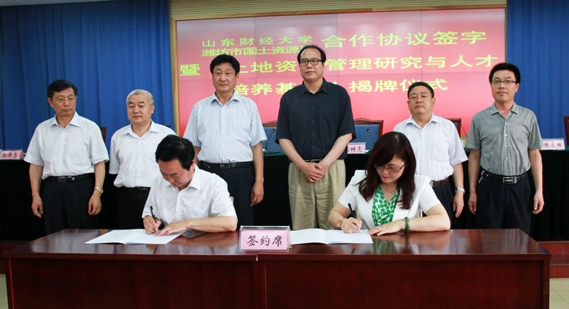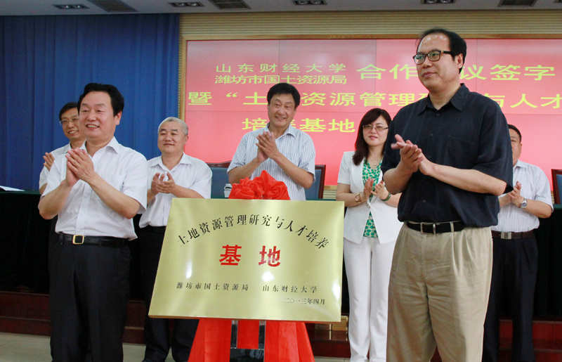 6月8日,公共管理学院与潍坊市国土资源局全面合作协议签约暨“土地资源管理研究与人才培养基地”揭牌仪式在潍坊举行。副校长吴彬与潍坊市国土资源局局长刘树亮共同为“土地资源管理研究与人才培养基地”揭牌并为刘树亮颁发兼职教授聘书。公共管理学院和潍坊市国土资源局相关负责人参加签约仪式。签约仪式由潍坊市国土资源局党委书记刘延民主持。