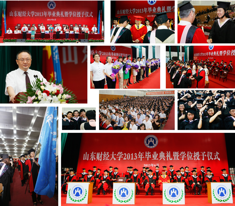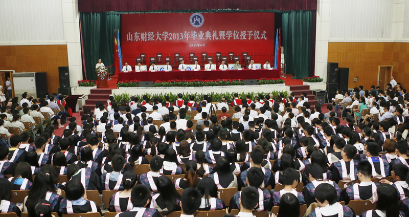 6月13、14日,2013届毕业生毕业典礼暨学位授予仪式分别在燕山校区和舜耕校区礼堂隆重举行。党委书记郝书辰,校长刘兴云,加拿大达尔豪斯大学经济系教授Barry·Lesser,党委副书记、纪委书记牟思伦,党委副书记张东超,人武学院副院长张国兴,副校长綦好东、胡文波、崔友平、李明勇、吴彬出席典礼。教师代表、家长代表以及各教学单位、党政职能部门、直属单位、教辅单位、科研单位主要负责人,2013届毕业生参加了典礼暨学位授予仪式。仪式由副校长聂培尧主持。