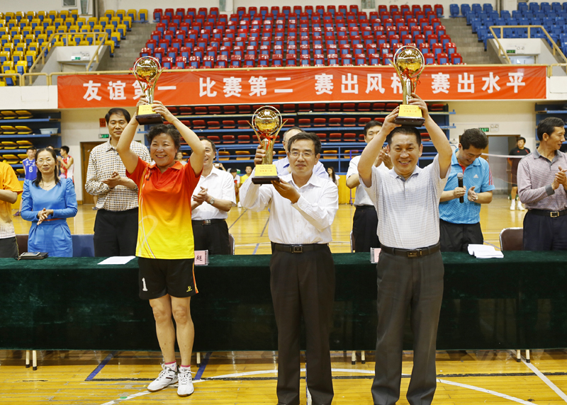 5月30日下午,由校工会主办、体育学院承办、校排球协会协办的“凝心聚力杯”首届教职工排球友谊赛在舜耕校区体育馆落下帷幕。校长刘兴云、党委副书记、纪委书记牟思伦,党委副书记张东超到场观看比赛并出席颁奖仪式。
