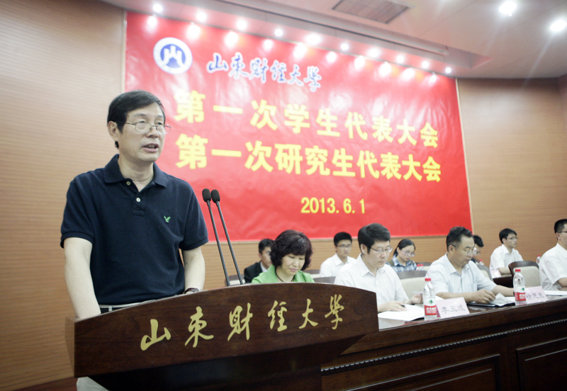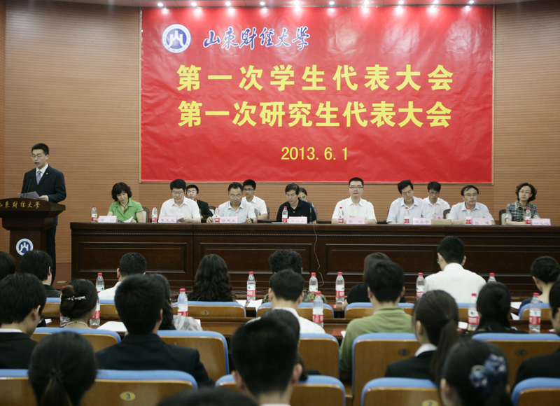 纪宁建、崔瑞东分别代表校学生会和校研究生会(筹)做了《继往开来探索发展团结带领全校学生建设高水平财经大学》和《稳步推进锐意进取团结带领研究生同学为建设高水平财经大学而奋斗》的工作报告。校团委书记邓迎迎作了热情洋溢的致辞并宣布第一次学生代表大会、第一次研究生代表大会胜利闭幕。