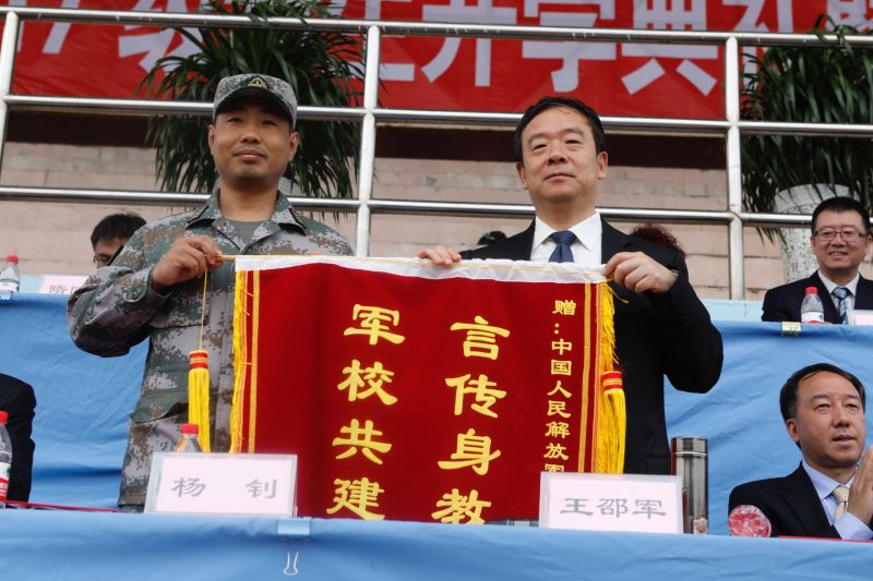 王邵军向中国人民解放军71345部队领导赠送锦旗。