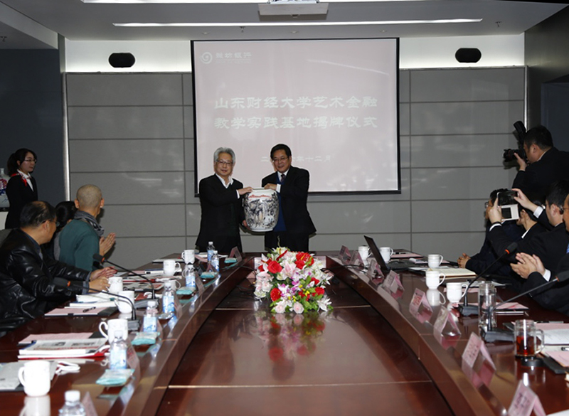 郭虎英介绍了双方合作的发展历程,肯定了“山东财经大学艺术金融教学实践基地”在双方共同培养艺术金融人才方面的重要作用,并为以后的深入合作提出了殷切希望。