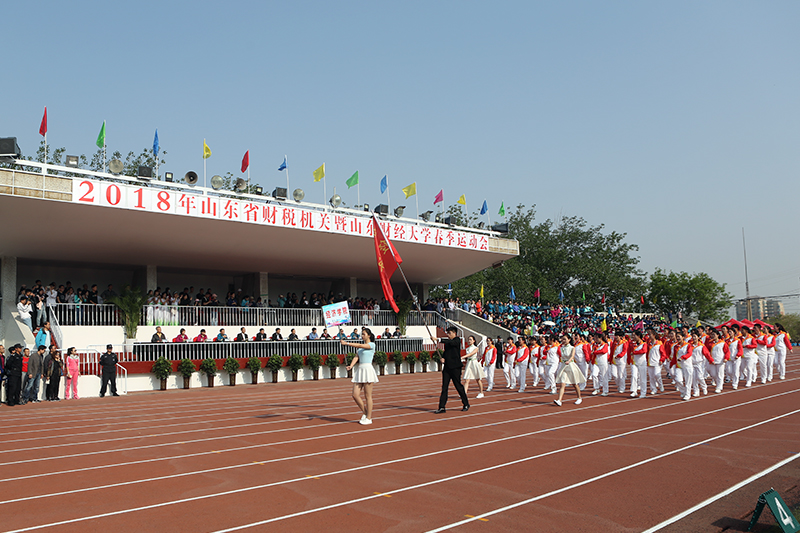 4月27日上午8:30,2018年山东省财税机关暨山东财经大学春季运动会在舜耕校区田径场隆重开幕。省财政厅领导陈祥志,省地税局领导韩奎祥,财政部驻山东省财政监察专员办事处领导安钢,省财金投资集团公司领导鲁维、孙清华、殷明、李秀芹、王洁明,省农业发展信贷担保有限责任公司领导宋文旭、肖培强、胡成立、魏光明,学校党委书记王邵军、党委副书记车滨、副校长綦好东等出席开幕式。开幕式由副校长张新主持。