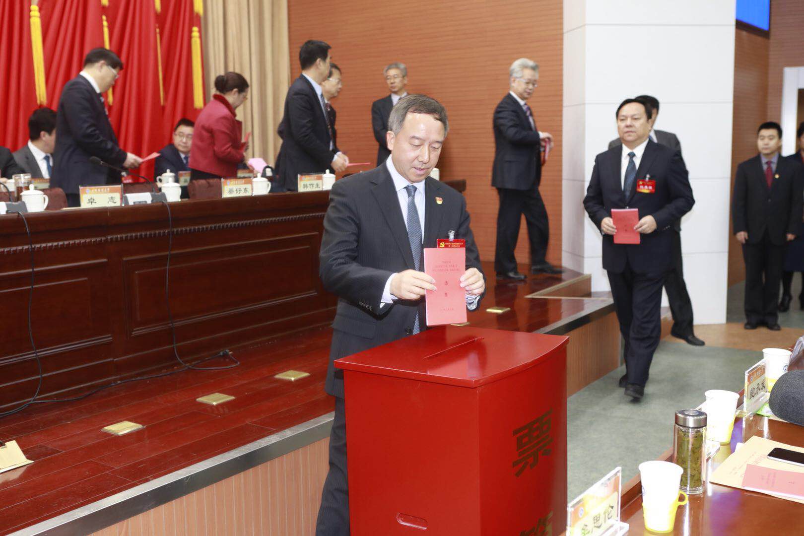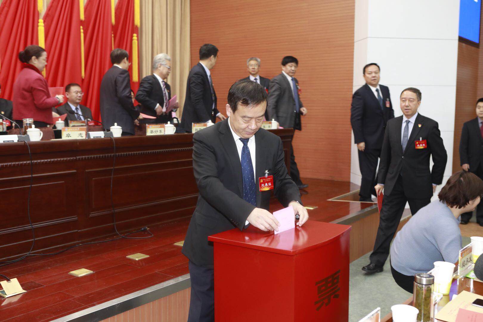 在宣布第一届党委委员、纪委委员候选人名单之后,选举新一届党委委员和新的纪委委员。各位代表依次走到票箱前,投下了庄严一票。
