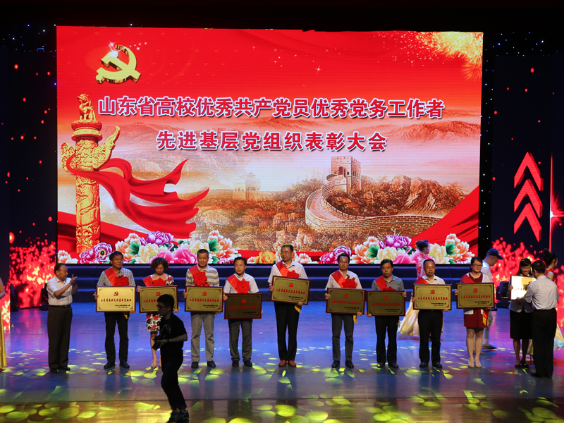 近日,山东省委高校工委在山东艺术学院大剧场举办山东省高校优秀共产党员、优秀党务工作者、先进基层党组织表彰大会暨庆祝建党95周年文艺晚会,对100名山东省高校优秀共产党员、50名山东省高校优秀党务工作者、90个山东省高校先进基层党组织进行了隆重表彰。我校有2名党员、2名优秀党务工作者,2个基层党组织受到省委高校工委表彰。