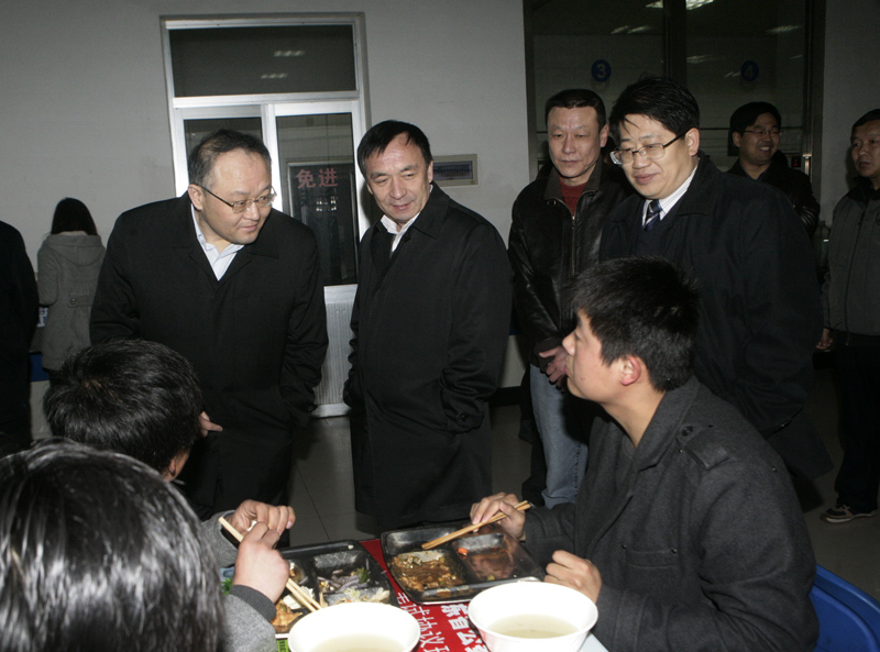 刘兴云、张东超先后来到西苑、东苑、民族、北苑餐厅,现场查看了食堂饭菜价格及质量,了解了免费汤、低价菜的供应及消费情况,与就餐学生进行了亲切交谈,倾听了学生对食堂工作的意见和建议。刘兴云对学生食堂的管理及服务给予了肯定,指出保持食堂饭菜价格稳定是促进学校和谐稳定的重要内容,希望学生食堂坚持好低价菜及免费汤的制作及供应,要求饮食服务中心加大与学生的沟通力度,夯实管理基础,提高服务质量,切实抓好饮食安全。