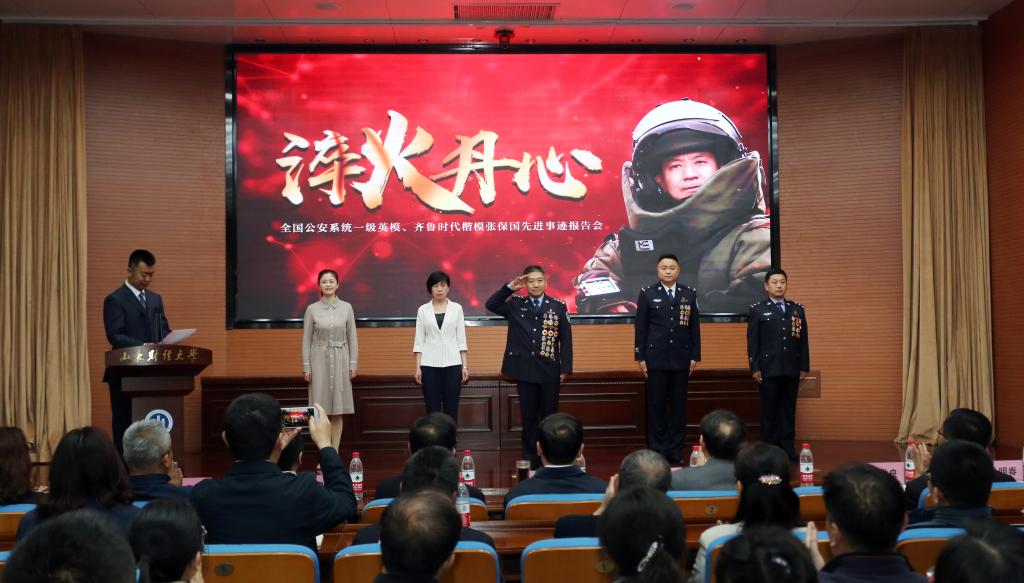 5月7日上午,全国公安系统一级英模、“齐鲁时代楷模”张保国先进事迹报告会在我校燕山校区举行。校党委书记王邵军、党委副书记赵友春,省委宣传部宣教处处长孙文利、省公安厅宣传处处长李新宇、省委教育工委宣教处副处长王莉等出席,学校有关部门负责同志和各学院党委副书记、辅导员、学生代表400余人参加了报告会。
