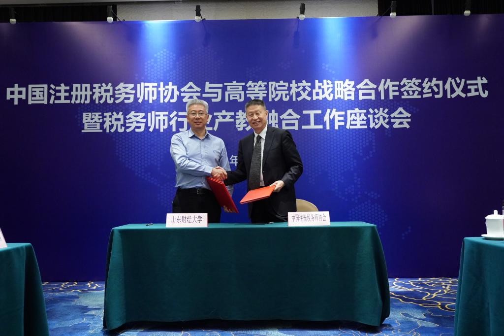 在签约仪式上,我校和吉林财经大学、南京财经大学等10所高校分别与中国注册税务师协会进行了签约。吉林财经大学校长孙杰光、我校副校长张新等分别代表签约高校致辞。