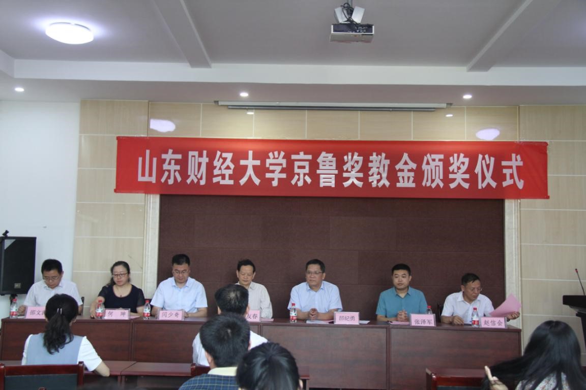 郝纪勇为获奖教师颁奖。他说,京鲁奖教金自2018年1月设立以来,已连续两次在山财大颁发,感谢法学院长期以来对京鲁的支持帮助,今后将进一步加强合作,并预祝法学院各项工作再上新台阶。